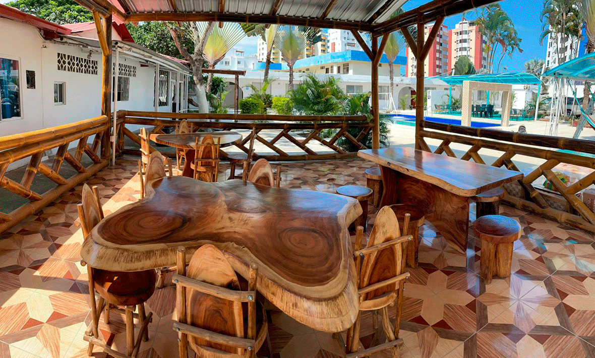 En Tonsupa Palms Hostería tenemos más de una sección, en nuestra cabaña tipica podrás disfrutar de la vista que te ofrece nuestras instalaciones.